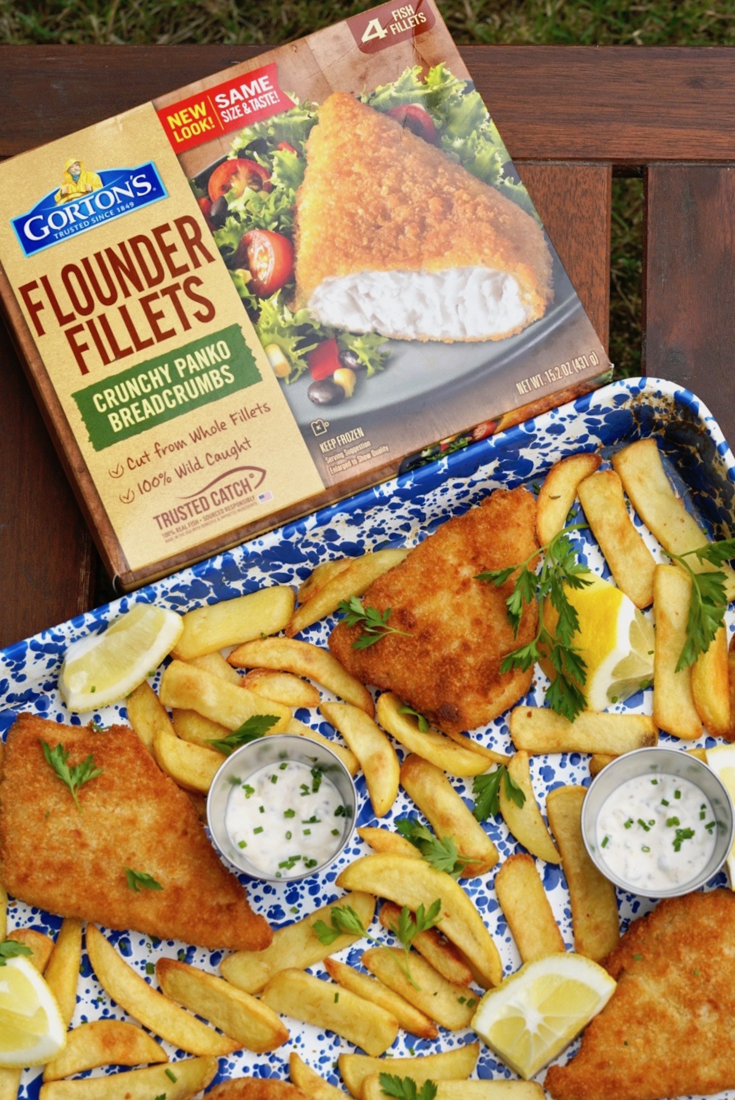 Sunny days mean more time outside, and this was such an easy meal to throw on the grill and enjoy! The sauce comes together quickly and is delicious with the crunchy Panko Flounder Filets and the fries! If you want to you can cook this meal in the oven, but I suggest enjoying it outdoors with good company and lots of sunshine. Fresh lemon really brightens up the whole meal. #AD #stickwithfish